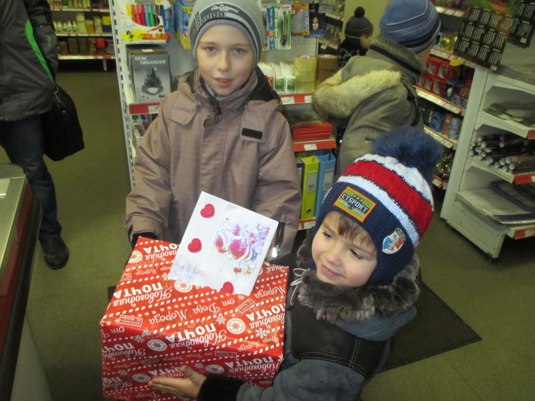 Перед новым годом мы написали письмо дедушки морозу и отнесли его в магазин комус там стоял ящик для писем А сегодня нам позвонили и сказали приходите за подарком от дедушки мороза. Вот мы в комусе )))))) Наш подарочек!!!!