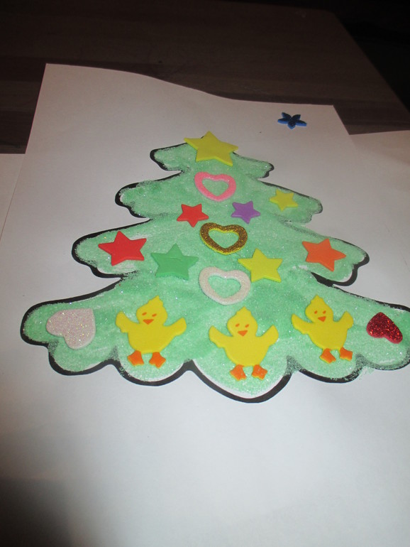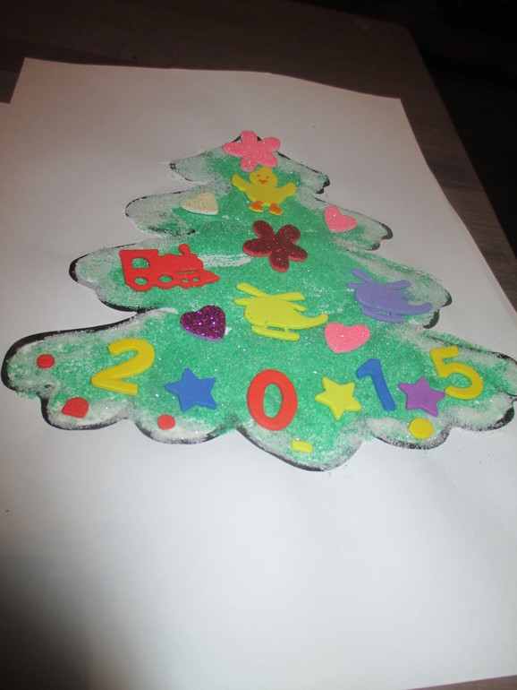 Ну и конечно, вы можете сделать аппликацию из белой бумаги, салфеток, соли, манки или макарошек-звёздочек, на своё усмотрение :)
