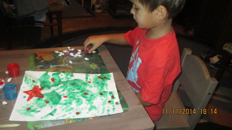 Занятие подарит вам хорошее настроение! Поможет развить творческие способности ребенка, фантазию! И к Новому году у вас уже будет картинная галерея вашего маленького художника!