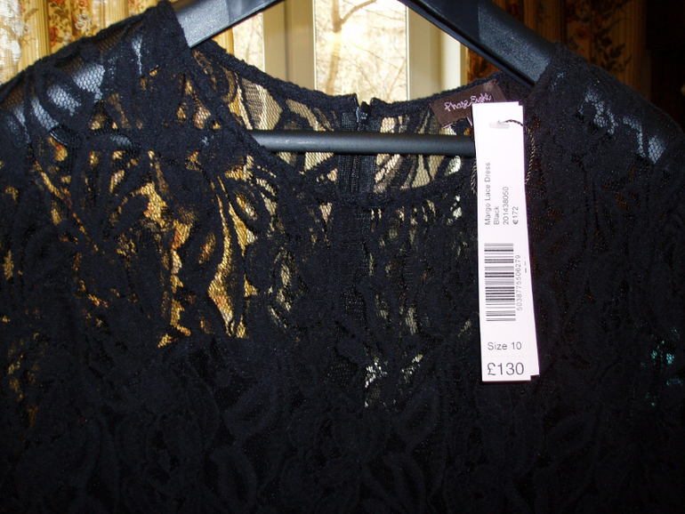 На фото я в таком платье только на размер больше. Цена указана на бирке (130 фунтов или 172 евро) - 7 000 рублей. Без торга.