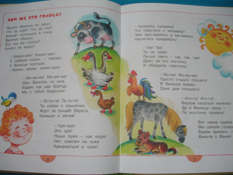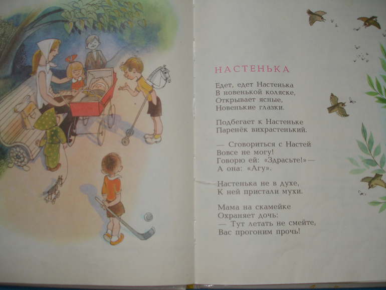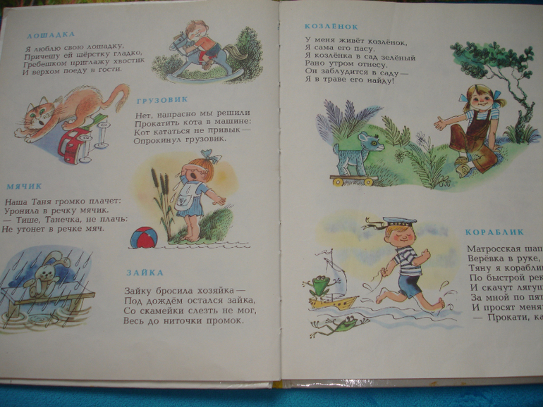 Кушак своеобразен. Но для разнообразия - почему бы и нет. Хочу ещё его "Игру в солдатики". Некоторые любимые стихи - на фото. Хотя Саня ещё любит "Где левая, где правая" и "Кораблик". Как в любимых оказался стих про сестрёнку, мне удивительно. Во-первых, кузина приезжала к нам лишь однажды и вряд ли запомнилась, а больше сестрёнок у нас нет, во-вторых отношения "мать-дочь" Саня вообще не признаёт. У него на картинках всегда "ба-ма" (большой-маленький), а это обязательно значит "мама-син" или "мама-папа-син".