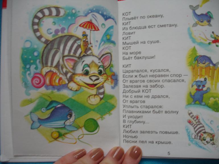 "Учёный жучок" - сборник, который я всячески рекомендую иметь в детской библиотеке. Очень удачная подборка стихов. В основном про игрушки и зверей. И хотя Саня подобные стихи воспринимает прохладно, этот сборник у нас идёт на "ура". Во-первых, видимо, из-за иллюстрация Тржемецкого. А, во-вторых, из-за того, что там много кошек и птиц. Несколько любимых стихов (читать про луну Саня тоже любит, с видом эксперта определяя, где луна, а где месяц).