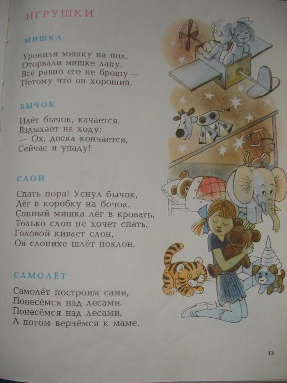 А.Барто с илл. Чижикова. Ещё моя. Печаль-печаль. Не очень у нас она пока. Пробовали читать "Настеньку" - осилили, но без желания перечитывать. "Игрушки" у нас не идут ни с кем - ни с Молокановым, ни с Рудаченко, ни с Тржемецким, ни с Чижиковым. Все остальные стихи в сборнике всё равно на вырост. Помнится, мне в детстве иллюстрации нравились. но сейчас я понимаю, что много Чижикова в библиотеку всё-таки не хочу, я не самый преданный поклонник.