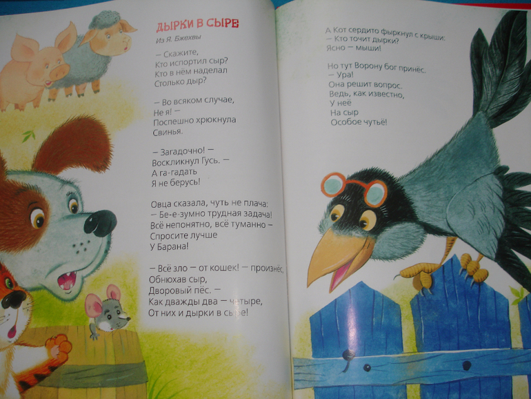 Правый же сборник от "Росмэн" величается не иначе как "Па ся". Он про сыр. И точка. Т.к. сыр - любимый продукт сыра, а вкушать литературный сыр, в отличие от гастрономического, можно в неограниченных дозах, то стихотворение "Дырки в сыре" нежно любимо и зачитано до дыр.