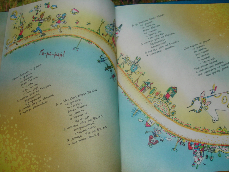 Д.Хармс - "Кораблик". "Малышковые" стихи Хармса пошли у нас хорошо, поэтому купила отдельный сборник на вырост. Не без скепсиса. Вообще-то я думала, что такой абсурд не придётся по душе ни мне, ни сыну. Я готова принести извинения Хармсу. Я прочитала его стихи вслух, и всё встало на свои места. Первое прочтение "Га-ра-рара" Саня слушал как под гипнозом, не шелохнувшись. Наш папа даже (извините за подробность) спросил, не мокро ли под сыном, так сосредоточенно он слушал. А я читала на одном дыхании. Это же песнь просто!