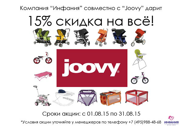 Примите участие в акции по продукции Joovy, только в августе месяце Вы сможете приобрести продукцию со скидкой в 15%!!!