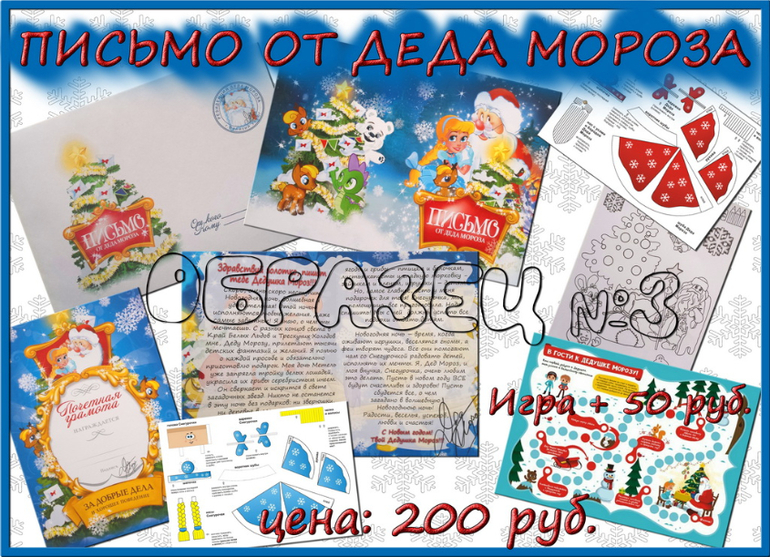 Предлагаю вот такие письма от Деда Мороза.Стоимость одного письма от 150 рублей. м.Новокосино