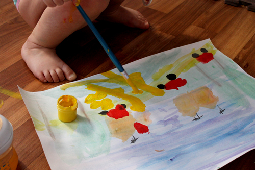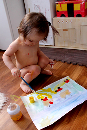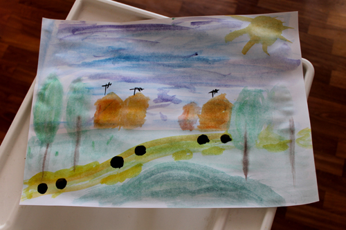 А теперь немного творчества. Я задекорировала фон, наметила дорогу и колеса: