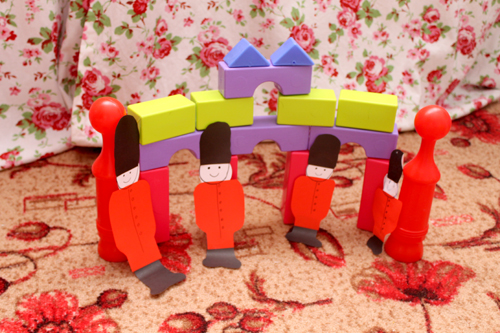 Наш автобус часто проезжает мимо Букингемского дворца. Мы построили его и поставили солдатиков на охрану: