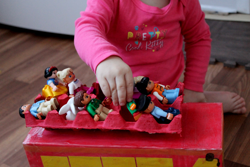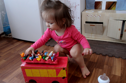 Затем внезапно пошел дождь! И на пути автобуса образовались лужи! Мы их усердно объезжали, а затем еще бусины раскладывали по ячейкам: