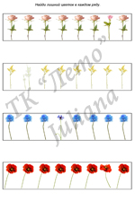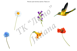 Например,задание: птички собирают букетик из разных цветов. Малышам нужно выбрать один цветок нужного цвета: