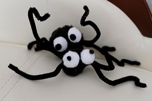 Когда Ханя была еще маленькая совсем,мы перебирали синельную проволоку,делали из нее браслеты и короны.Потом стали делать маленькие игрушечки,продевать помпоны.На Хэллоуин делали паучков: