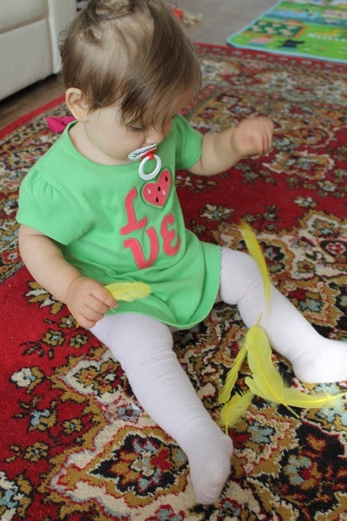 Перья тоже давно в ходу.Перебирали,щекотали,теперь клеим перья птичкам.