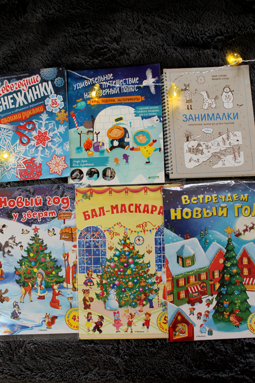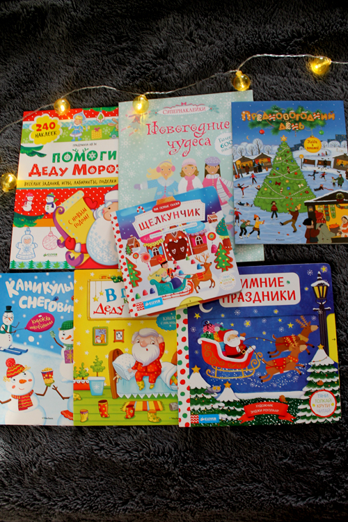 Книжки с заданиями,наклейки и пара книг-игрушек.Не могла устоять,но Хана любит такие крутить перед сном: