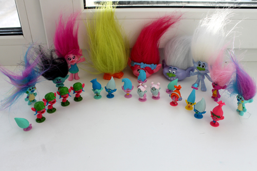-фольгированные пакетики с героями(тролли,пони);