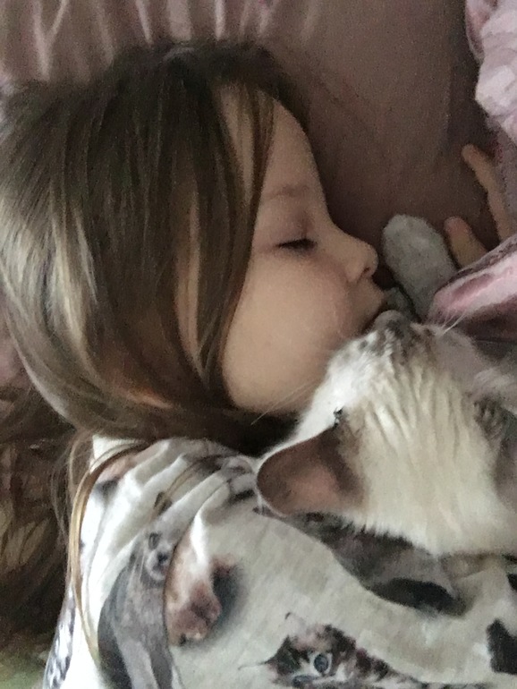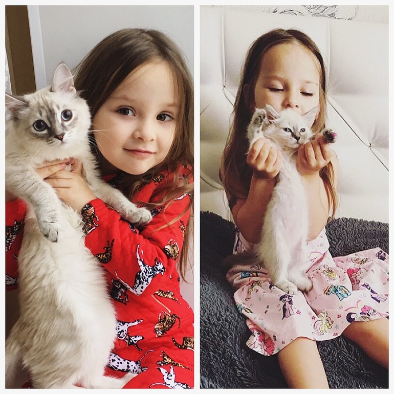 Кошку да,она нашла на улице,была размером с её ладонь,они не расстаются,кошка у нас странная,нянька.Нас с мужем кусает,а с Ханей курчит,ходит за ней по пятам,спит на груди или над головой,в волосы ее замотается и спит всю ночь.Попробуй тронь,-сожрет😂😂😂😂А собака Ханку не любит,ревнует
