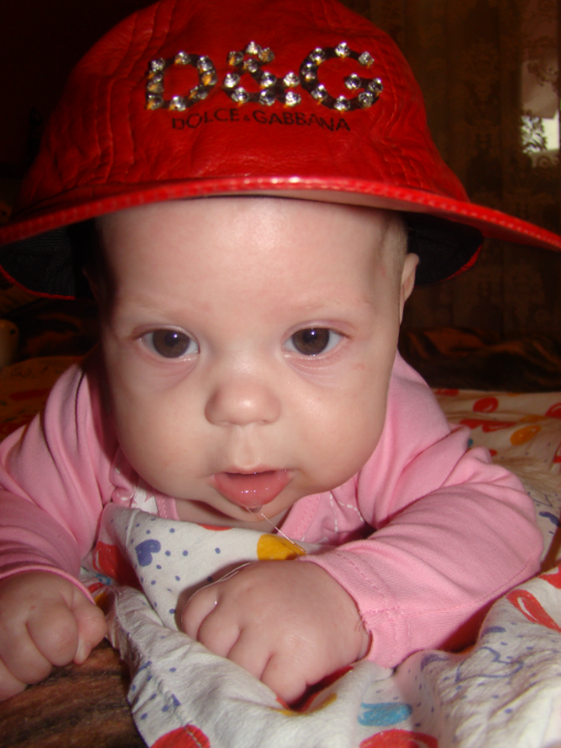 какая сладкая девочка!) такие щечки хамячёчки) а какое платье, ссупер красивое)