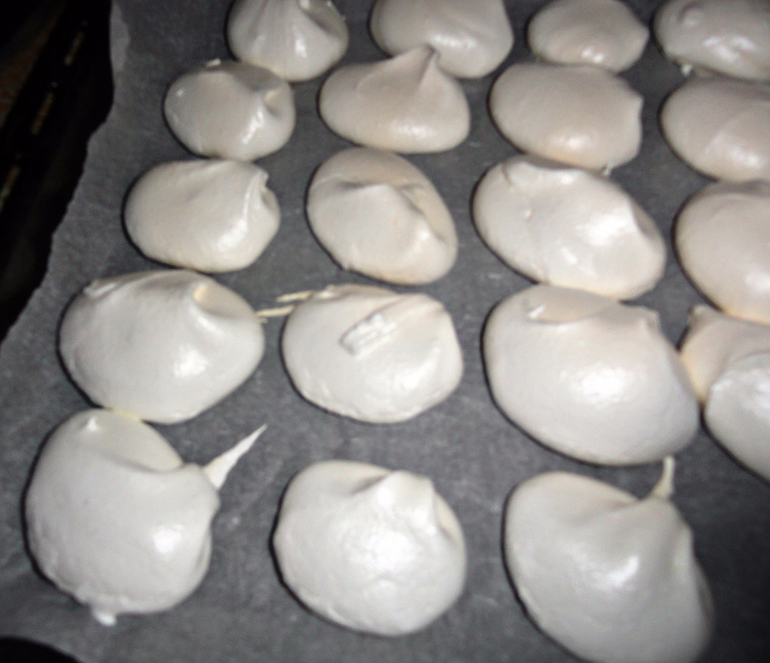 По истечению времени мы получаем сухенькие,хрустящие ,белоснежные пирожные!