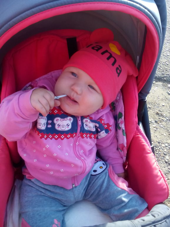Вчера нам было 11 месяцев вес 11 кг что то мы много набрали в этот раз целый 1 кг,рост 72см. Увидела что на верху лезет первый правый моляр.Ходить мы так сами и не начали боится за одну ручку ходит хорошо даже вот ели держится за мой палец и ходит а сама ни как,и уже прям ведет меня сама куда ей надо поворачивает,тянет если я иду не туда.я почему то думала она пойдёт раньше чем сынок он у меня пошёл в 10 мес. Научила ее показывать язык))) И прокололи ей ушки,хочу чтоб на годик уже была с сережками))))