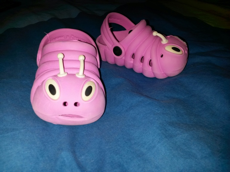 2 ) Галоши (а-ля Кроксы) на 20 разм, носили по дому. Очень выручают в период приучения к горшку. Другую обувь надо сушить, а эти промыл, обтер и опять одел :-) Любимая обувь дочи! Мягкие, легкие и интересные