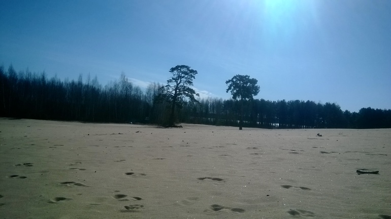 Зато окружающая природа тут прекрасна! Из окон видны сосны, а через дорогу начинается огроменный пляж с белым песочком и подходом к озеру Разлив. В округе только наш дом многоквартирный, а в остальном - сплошные дачи и коттеджи. То есть живем практически на даче, но с квартирными удобствами.