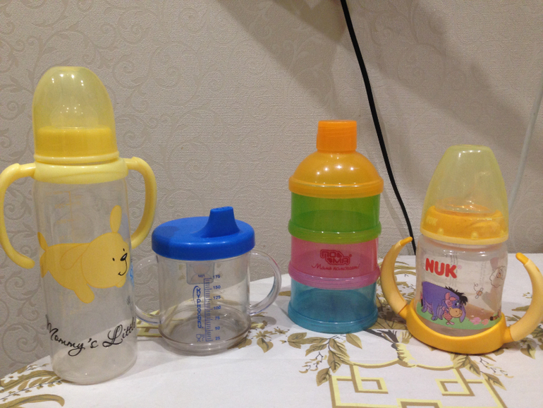 Бутылочки, поильники, дозатор для смеси. За все на 2-х фотографиях 800 руб.