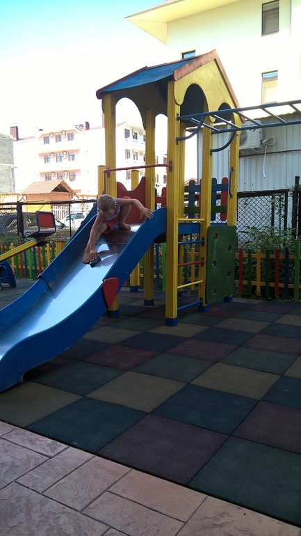 Детская площадка около отела. Маленькая конечно, есть больше и интересней в соседних. Тут только горка, батут и качели на двоих.