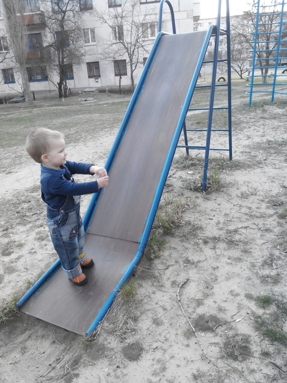 Обожает горки, как и все дети наверное....