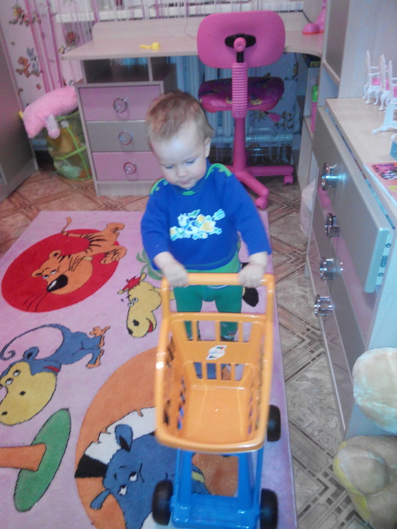 Любит складывать и перебирать вещи.Нашёл мой старый стакан из-под йогурта, в нём хранились цветные карандаши, его любимое занятие не рисовать ними, а высыпать и собирать по одному в баночку.Может пол часа зависнуть на этом.Любит танцевать, гулять, полюбил обниматься.Вот с поцелуями у нас не густо...