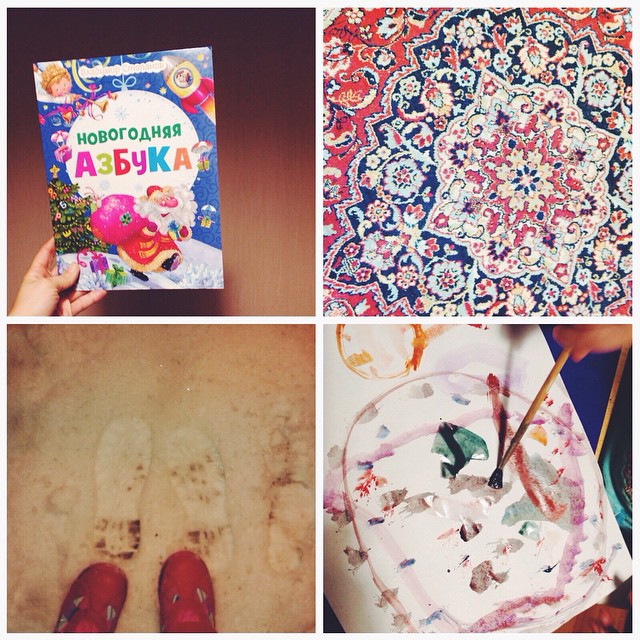 День 23: #ульянкиняркийнг #ждемновыйгод2015 @birzhanova @modistka_ann -------- Уф, нагулялись мы сегодня! Снег то какой! Налепили комков, снеговиков и стулья-кресла! Оставляли следы на снегу, но Улю больше интересовали снежные эскимо. А дома нас ждала новая книжка, пожалуй лучшая из новогодних этого года, что я видела и вновь постеленный ковер. Ну и #маленькиеножки впервые самостоятельно изобразила Новый год! Это елка, мандарины, шары и следы на снегу