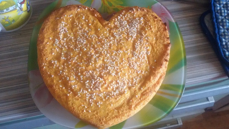 Манки - наверное штуки 4-5 столовых ложек перемешать с 2 столовыми с горкой ложками сметаны. Туда же 2 яйца. 4 кусочка сахара рафинада ( сыпучего не оказалось в доме ). Оставила набухать. Одну большую морковку и 3 совсем маленьких вжикнула в блендере. Который стаканом. Тереть было лениво. Затем в манку добавила пачку творога. Все тщательно раз мешала до однородной массы и добавила морковь и разрыхлитель. Силиконовую форму смазала маслом, выложила смесь, сверху посыпала кунжутом и в духовку на 180 градусов. Выпекала примерно 40 минут. Кушали полив вареной сгущенкой.
