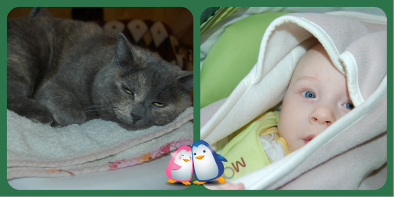 Теперь Егор улыбается при виде кошки (раньше как-то равнодушен был) и ползет в ее сторону. Кошка в шоке!