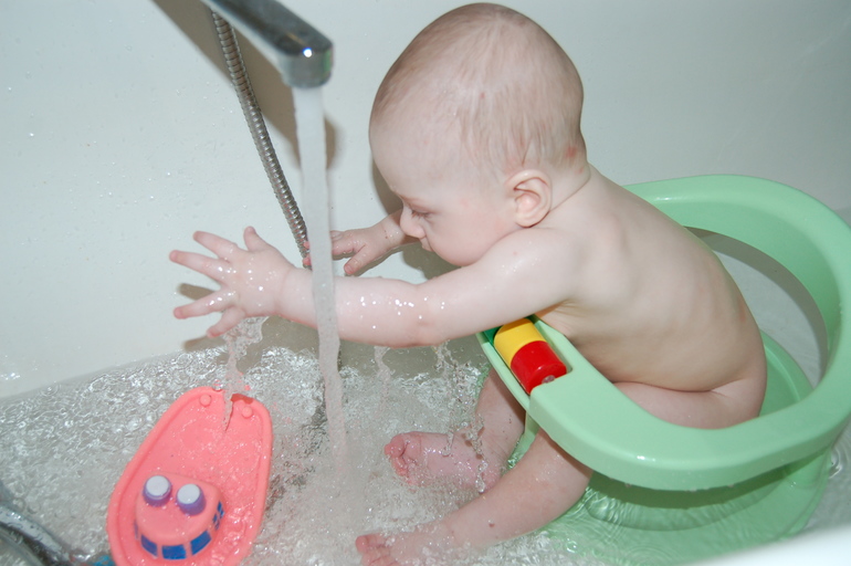 Дали нам новый агрегат для купания. Егору понравилось, сколько звала, даже не обернулся на меня, так ему интересно было.