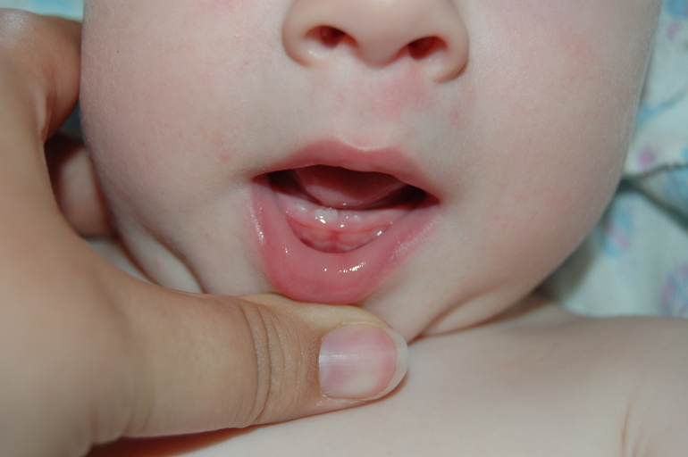 Зубы. Ура! За день до 8 месяцев у нас прорезался первый зубик! На днях были в гостях у моей подруги и Егор своим зубиком укусил ее за коленку! Зуб в действии)))) Ждем теперь второй.
