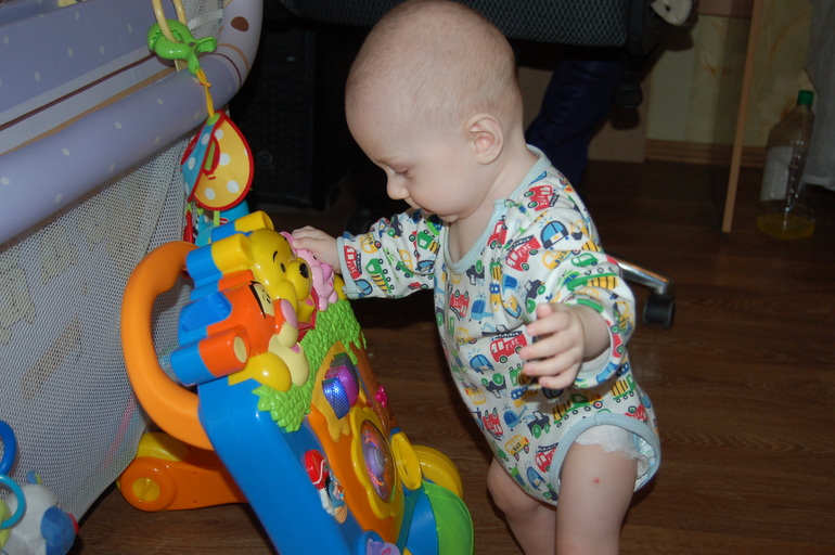 Параметры. Рост у нас 69 см (+23 от рождения), вес в этом месяце топчется на месте также как и в 7 месяцев - 6800 (+4300 от рождения). Думаю вес встал из-за болезни (мы там немного потеряли) и из-за возросшей активности.