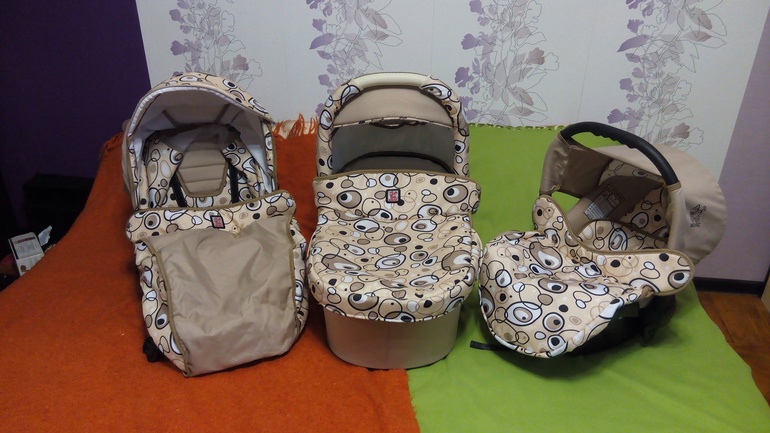 Продается коляска 3 в 1. Наша любимая колясочка на любой сезон. Отъездили в люльке до 6 месяцев, потом пересели в прогулочный блок. Прекрасная проходимость коляски в любых погодных и дорожных условиях. Гоняли по метровым сугробам, по дачным канавам и все ей нипочем, состояние идеальное) Колеса поворотные, можно также зафиксировать. Везде все открывается, закрывается, регулируется по высоте. Очень удобно складывается и влезает в багажник маленькой машины, даже люлька складывается. Легкая и компактная, влезает в узкий лифт. В общем мы на 100% довольны этой коляской и рекомендуем всем! В комплекте также автокресло 0+, сумка на коляску.