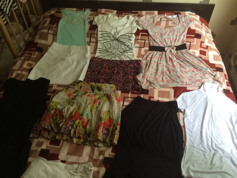 На фото не все! Две футболки(мятная и молоко с черным бисером) новые, только постирала, но не одевала.