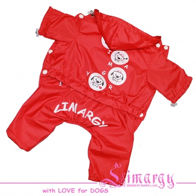 Дождевик, выполненный из тонкого, но 100% непромокаемого материала. Спинка украшена аппликацией.На лапках предусмотрена кулиска для плотного прилегания, препятствует промоканию и попаданию грязи.