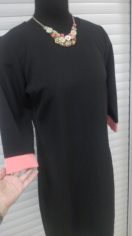 №15 Платье черного цвета с розовыми полосками по манжету и спинке, подойдет и для работы и для праздника. Размеры 42,44, Стоимость 2000 руб