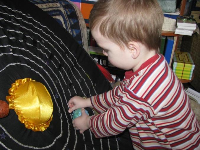 Теперь Димка с радостью вешает и снимает их, а я пока рассказываю ему порядок расположения планет или их особенности! Например, Уран, как ему и положено лежит на боку. Меркурий самая маленькая планета из восьми основных планет.