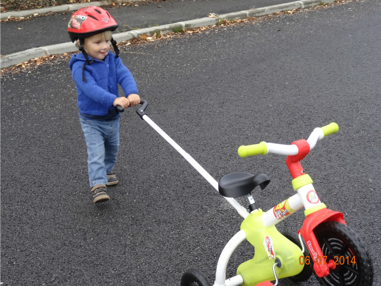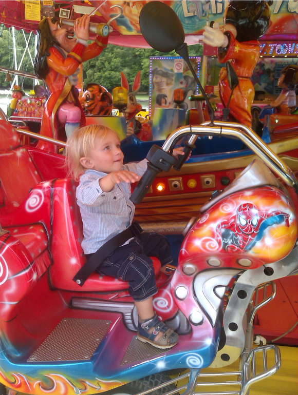 Кстати, кто заметил на фото сверху, на машинках или на карусели, Антуан обычно выбирает именно мото! А еще у Антуана связанный с мото-темой фетиш - каски! Он все обнимал-миловал папину, а потом ему посчастливилось, и он получил в подарок от моей мамы велосипед и каску!