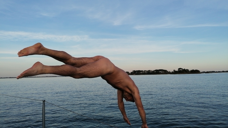 И купались голышом, ныряя с борта. Не знаю, не решилась пока, вставить моё морское ню или другом отделаться, ему все равно😂
