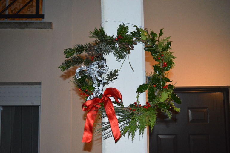 Сначала вот: венец творенья! Мы с детьми сделали сами рождественское украшенье. Не знаю, что это, веночек или что-то вроде. Сейчас столько всего в продаже, что мне даже покупать расхотелось. Прям на кило покупать можно. Уж лучше самим сделать, решила я, отняла у Антуана ветку, которой он подметал улицу, нашла шишку и утром сегодня засадила детей за работу. Лиза красила шишку, Антуан веточку (у нас снега-то нет), а я отвечала за общую драматургию:)