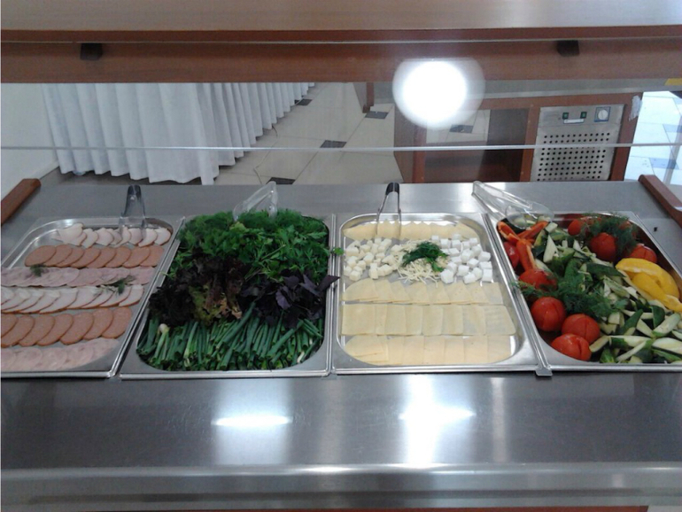 ВСЕ ВКЛЮЧЕНО (гостям предлагаются всевозможные блюда с 07:00 до 20:00 со спиртными напитками кубанских производителей, безалкогольные напитки около бассейна): завтрак (08.00 -11.00), обед (13.00-15.00) и ужин (18.00-20.00) "шведский стол" , а так же промежуточное питание с 16.00 - 17.00.