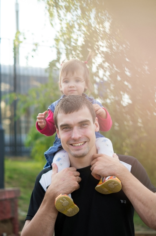 Маленький привал, решили перекусить на поле) Лизка кормит папу печенюшками)