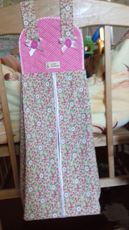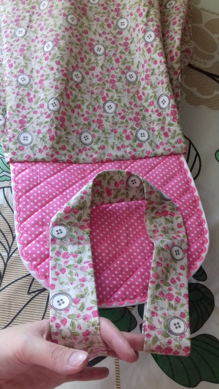 Наконец-то я его пошила. Так как в дальнейшем это будет сумочка для тканюшек то особо не привязывала расцветку к полу моего ребёнка, д аже наоборот, выбрала тему связанную с рукоделием.