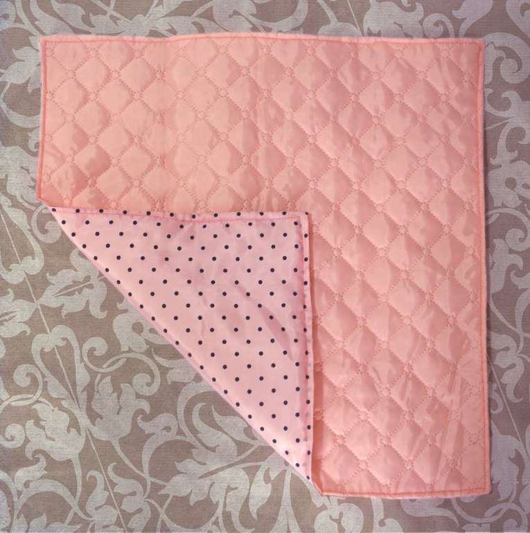 Двустороннее розовое стеганное одеяльце, оборотная сторона розовая в точечку.