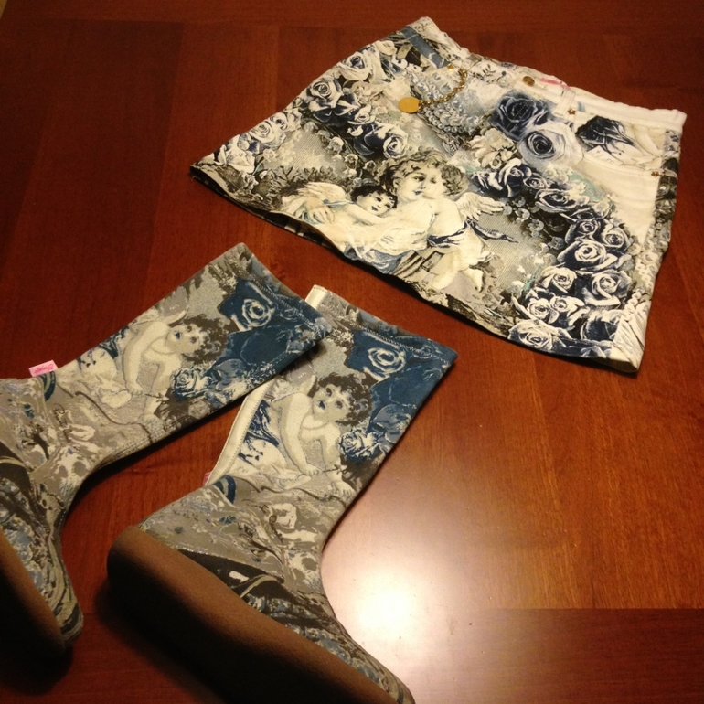 Юбка плотный хлопок, сапоги тканевые (стельку замерять не могу, размер 32-33)