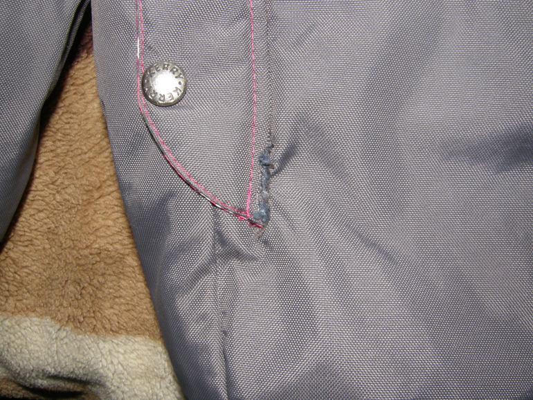 1. Оторвали собачку на молнии. Вставила скрепку. При носке не видна, она закрыта накладкой от ветра. Фото в закрытом виде ниже. Ничего не видно.