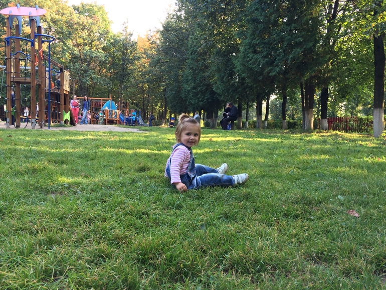 Физическое развитие наше все. Везде залезает сама, не разрешает помогать, горки, лесенки, причем не только лицом но и на пузе, спиной. воображуля еще та. Повторяет за старшими детками, так смешно за этим смотреть.